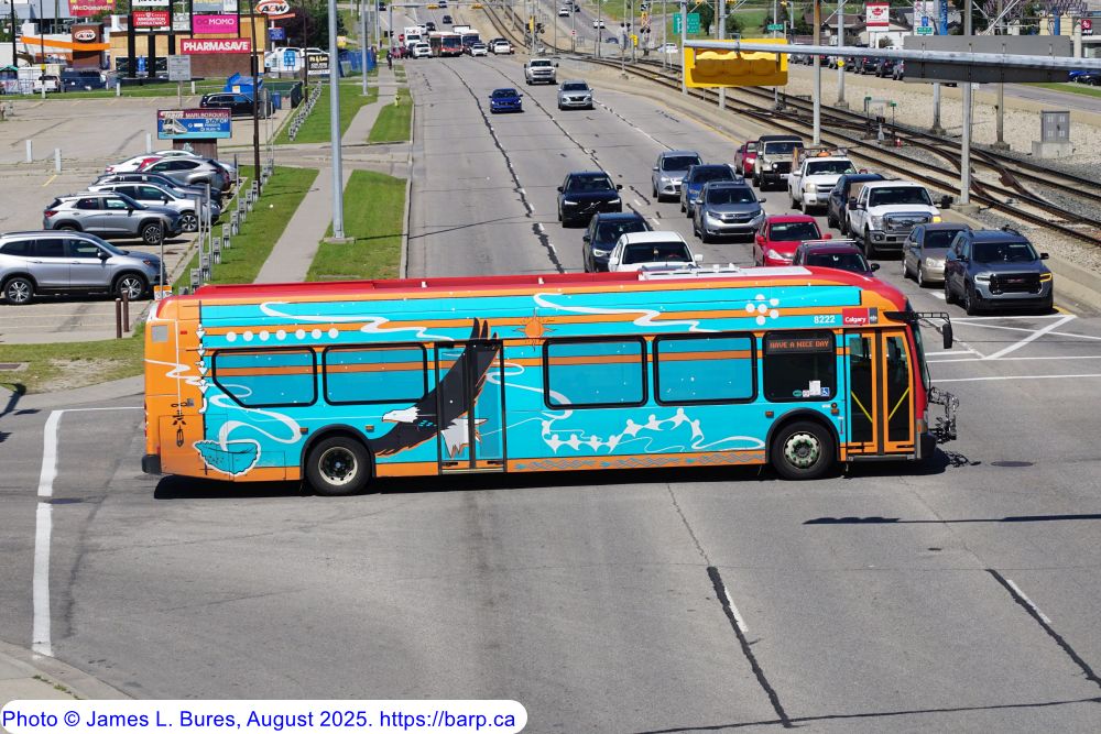 8216 running EB on 14 Ave NE approaching 33 Street NE as a route 127, featuring an Indigenous-themed wrap. |