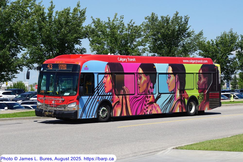 8249 arriving at McKnight-Westwinds Station as a route 43, featuring a city-sponsored artwork wrap. |