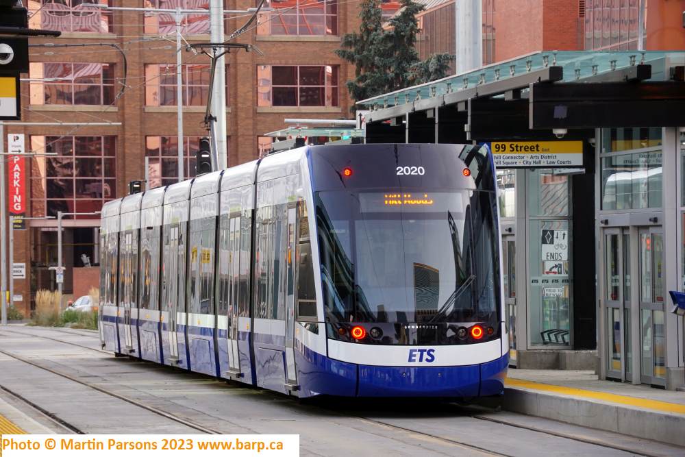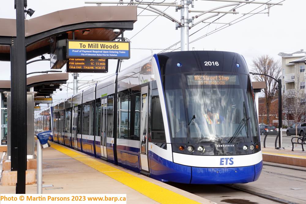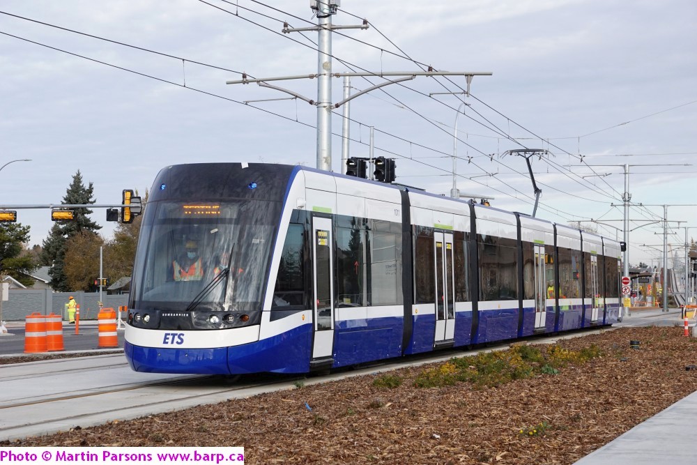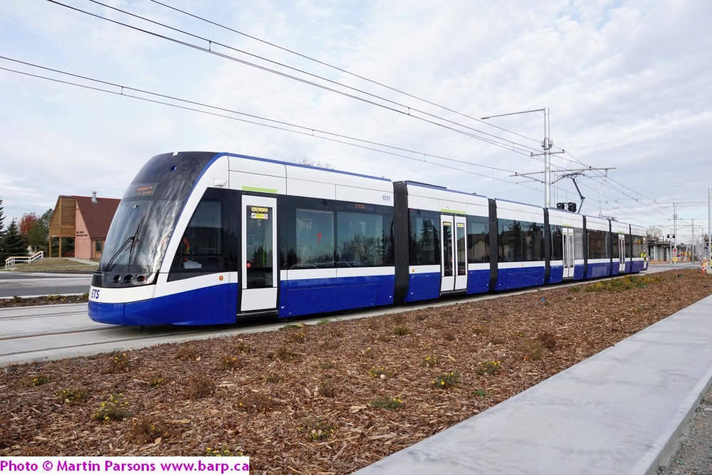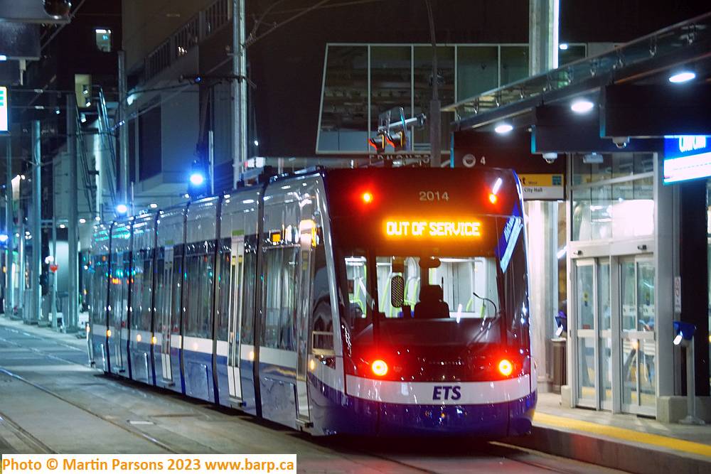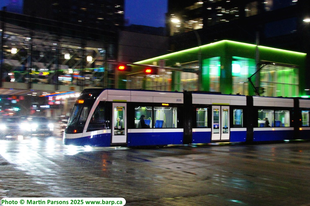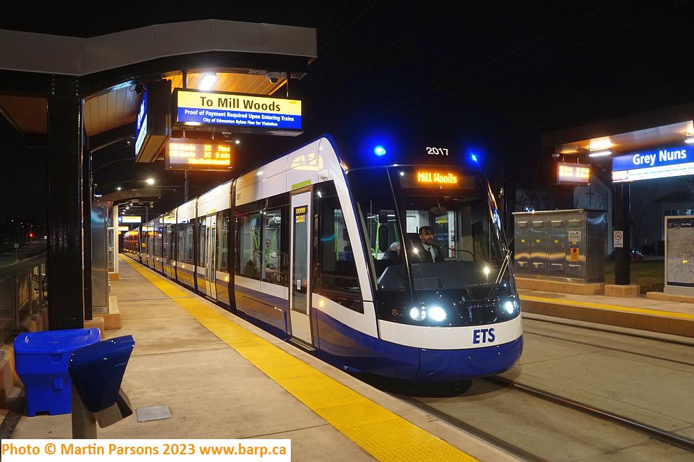 Grey Nuns stop in the evening on the day the Valley Line commenced revenue