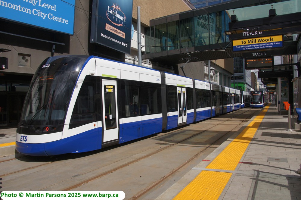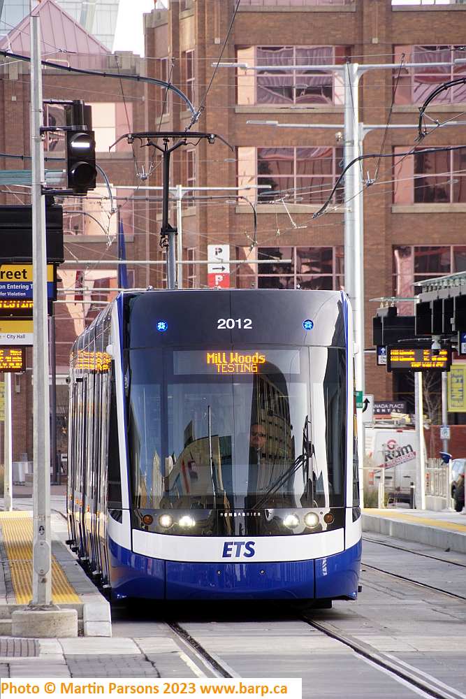 of testing. Note the sign. This is a southbound train to Mill Woods, the