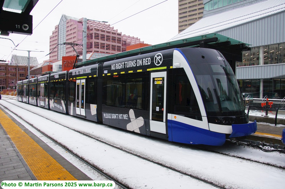 Ave approaching the Strathearn stop in a wrap for the Royal Alberta Museum