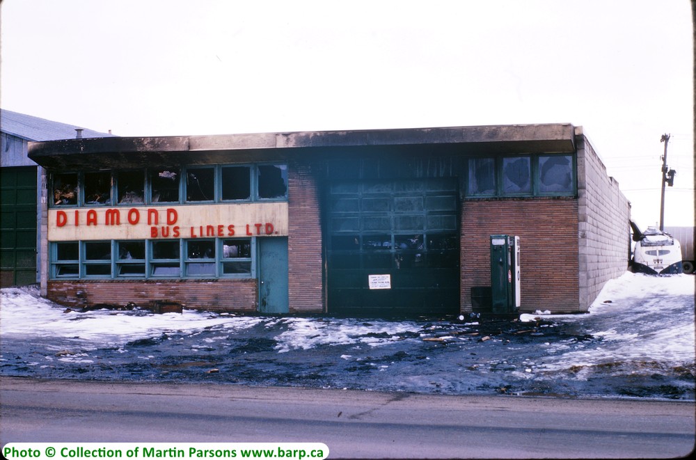 Diamond Bus Lines garage after suffering a fire. |