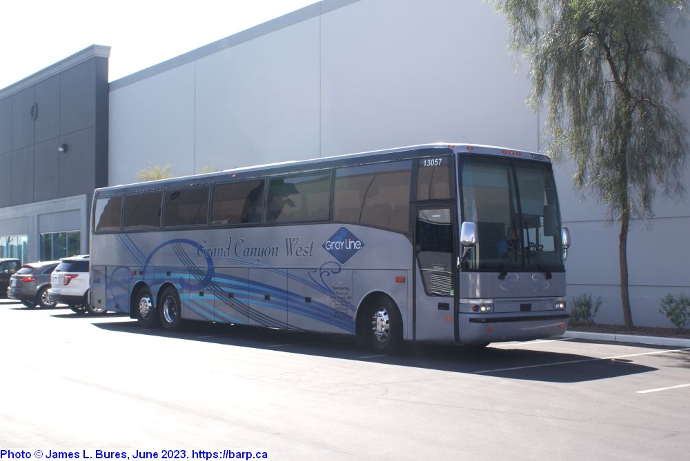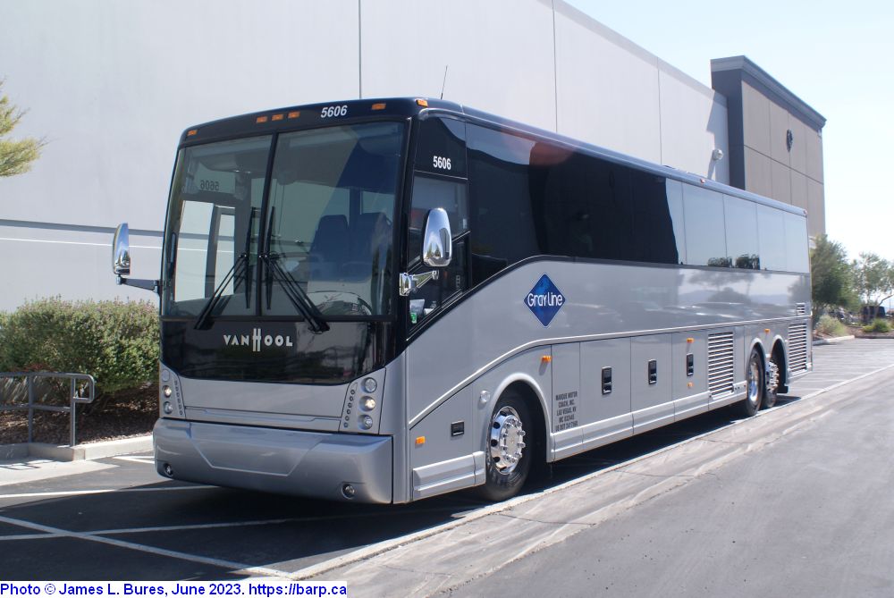 1996-2002 Van Hool T2145 at the coach terminal South of Las Vegas. Note that the front of this bus has been recapped to look similar to a 2003-07 model. |