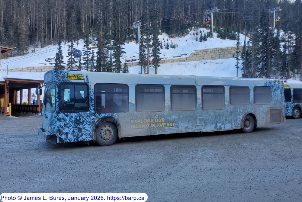 #44 arriving at the Sunshine base lodge. This bus is ex-Red Deer Transit #730. |