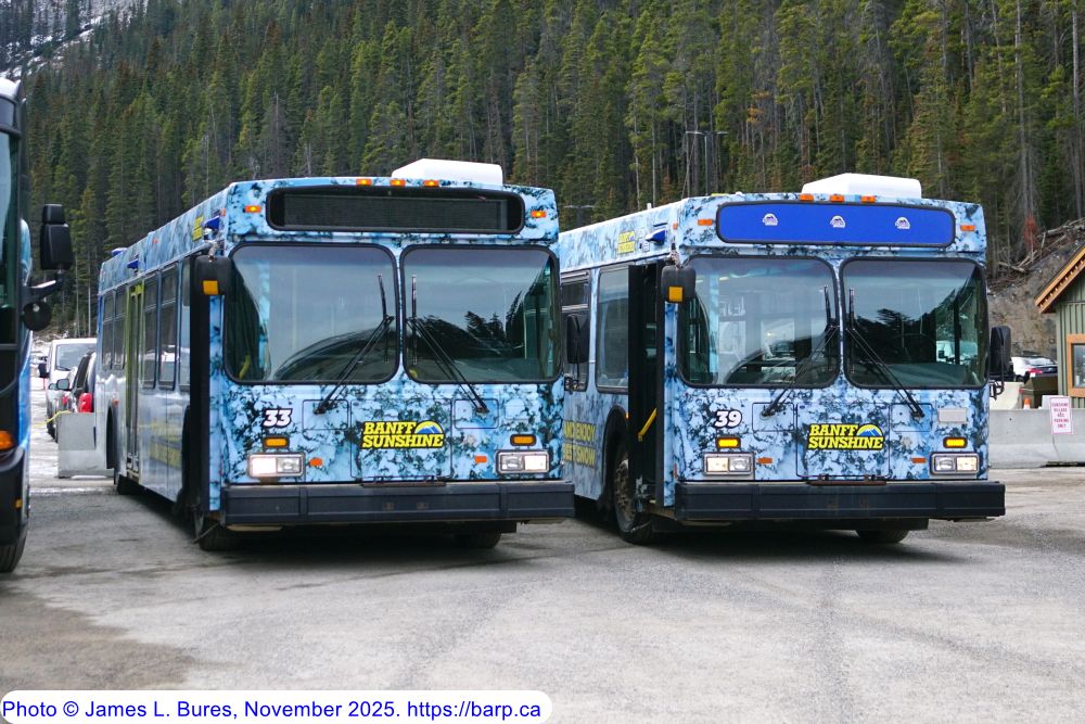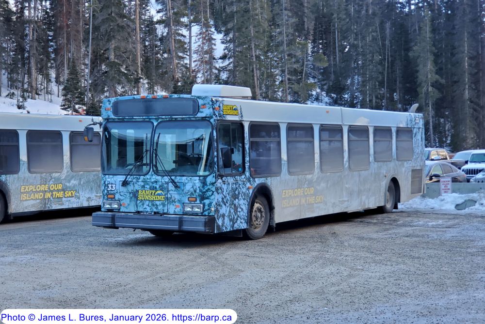 The second incarnation of #33, ex-Edmonton Transit Service #4341, parked at the Sunshine base lodge along with #39. |