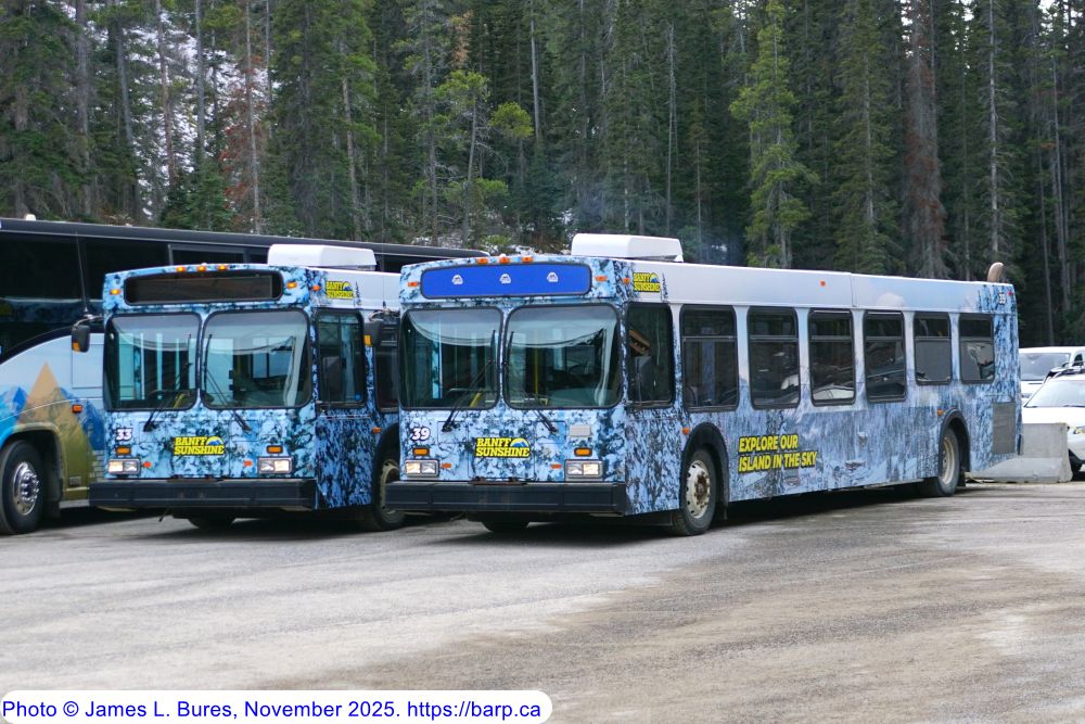 #35 at the Sunshine base lodge along with #39 (ex ETS #4349) and the second incarnation of #42 (ex ETS #4267). This bus is ex-Edmonton Transit Service #4269. |