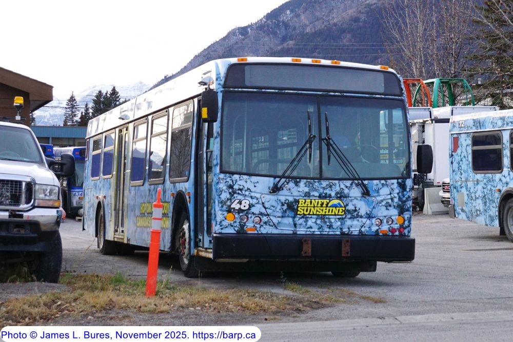 #48 waiting to enter service at the Sunshine base lodge. This bus is ex-Red Deer Transit #726. |