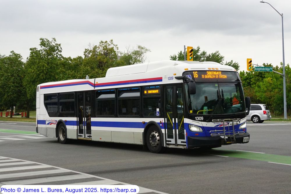 1309 running SB on Central Park Drive at Knightsbridge Road as a route 16. |