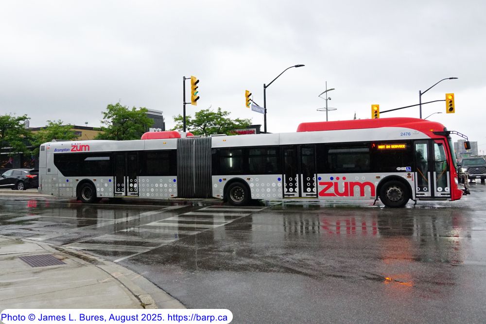 2476 not in service arriving at the Mississauga City Centre Terminal. |