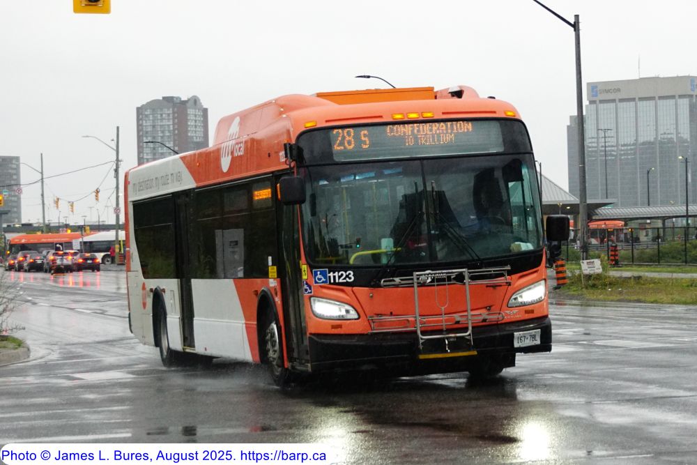 1123 departing the Mississagua City Centre Terminal as a route 28S. |