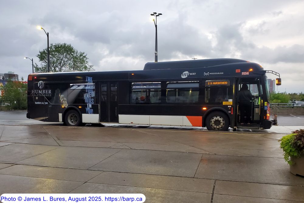 1134 at the Mississagua City Centre Terminal as a route 2S, featuring a full wrap for Humber Polytechnic. |