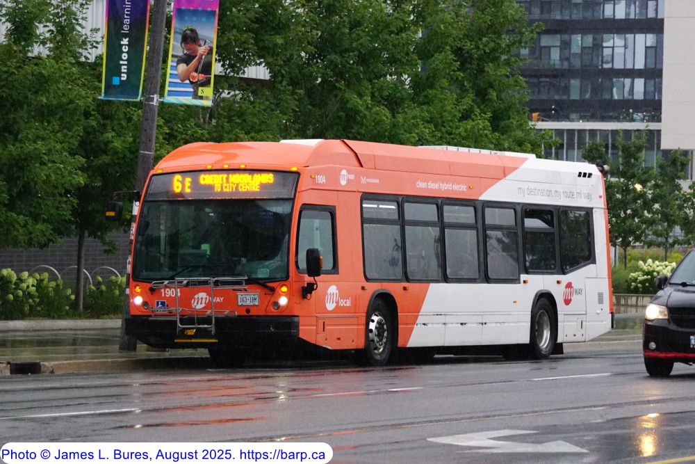1904 arriving at the Mississauga City Centre Transit Terminal as a route 6W. |