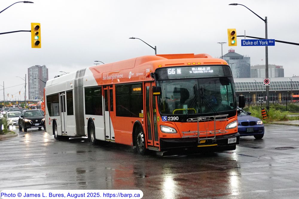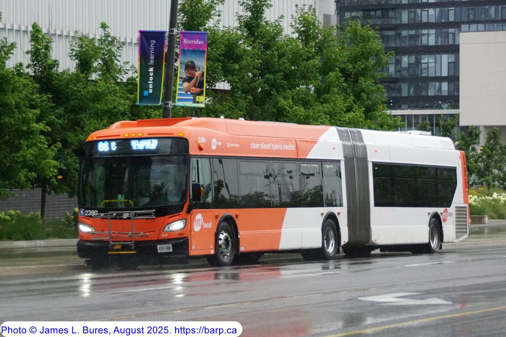 2390 departing the Mississauga City Centre Transit Terminal as a route 66N. |