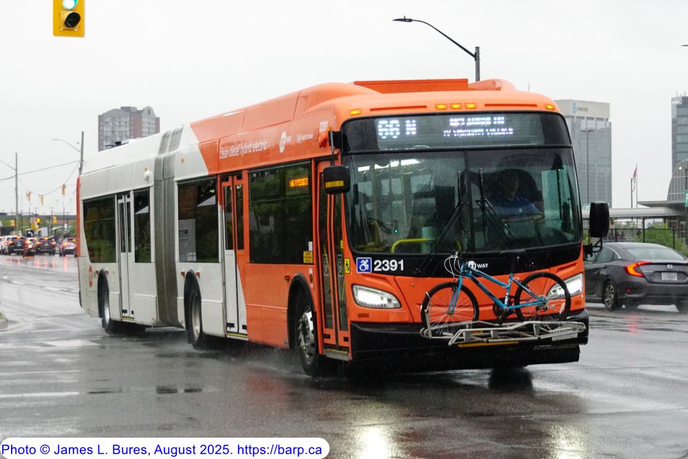 2391 departing the Mississauga City Centre Transit Terminal as a route 66N. |